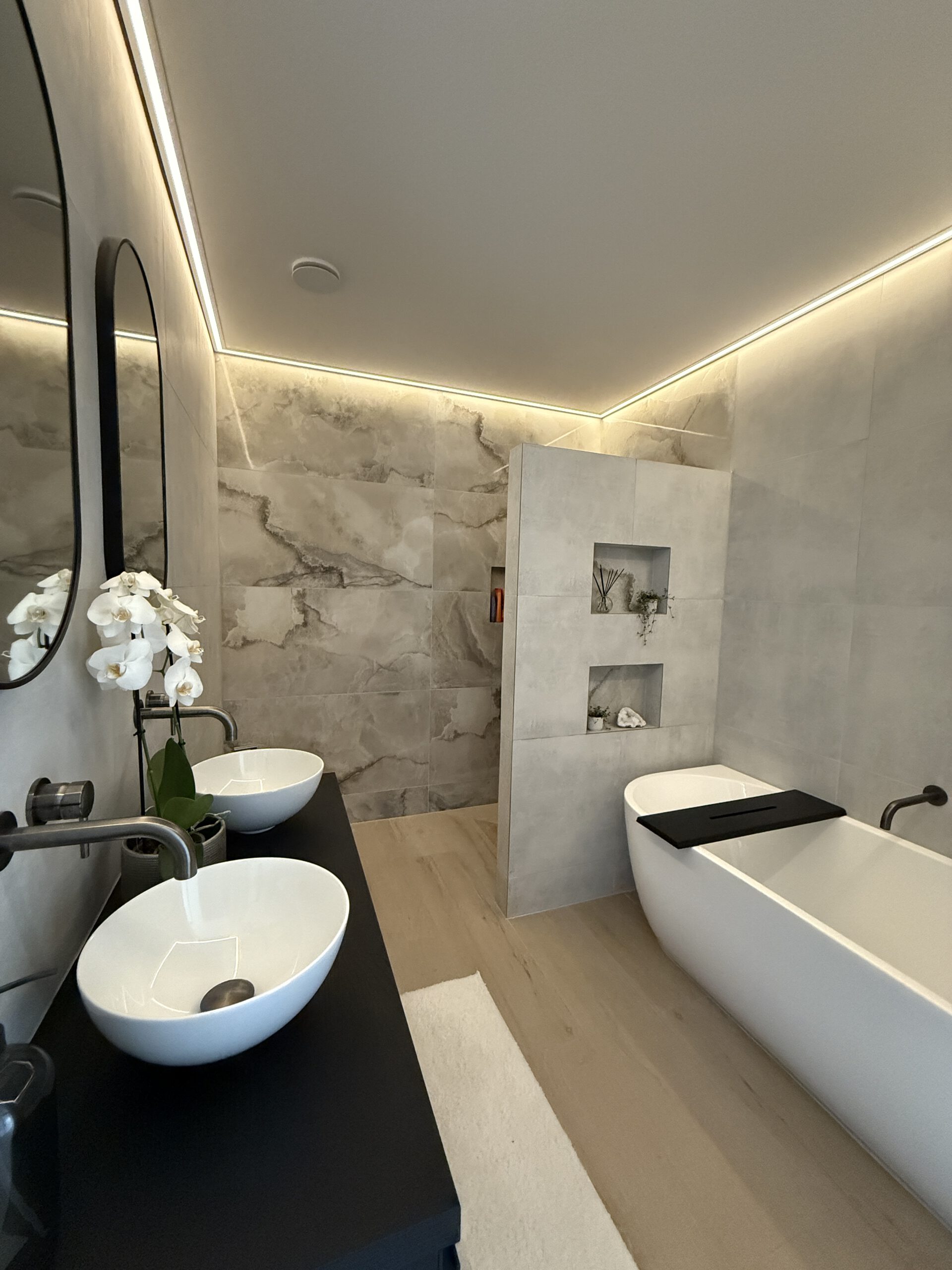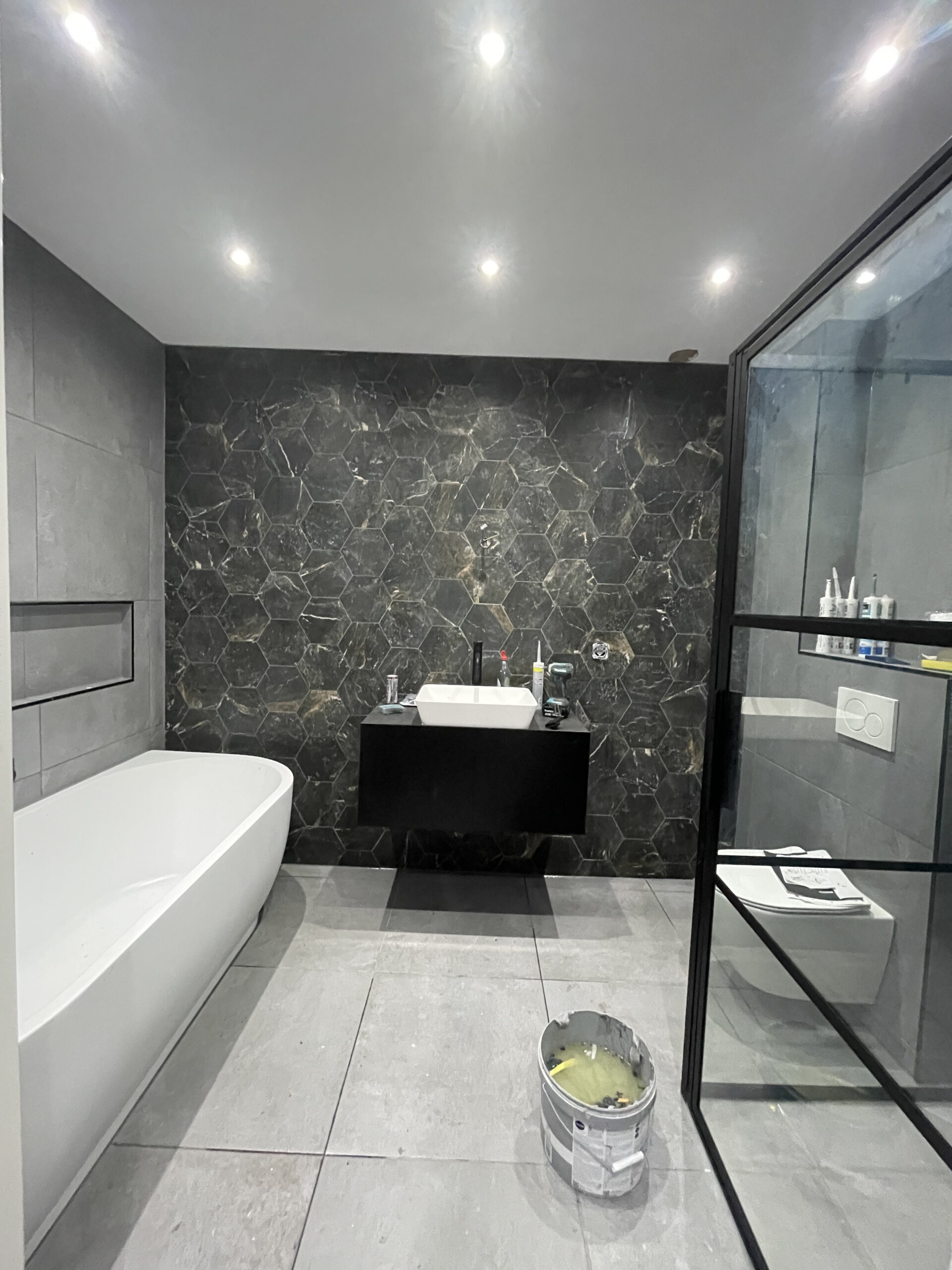 De eindresultaten van diverse door ons uitgevoerde werkzaamheden. Bestaande uit badkamerrenovaties, het plaatsen van een erker, het leggen van vloeren, een kastenwand op maat en een zolderverbouwing met o.a. een bad. Dit is slechts een kleine greep uit recente opleveringen.